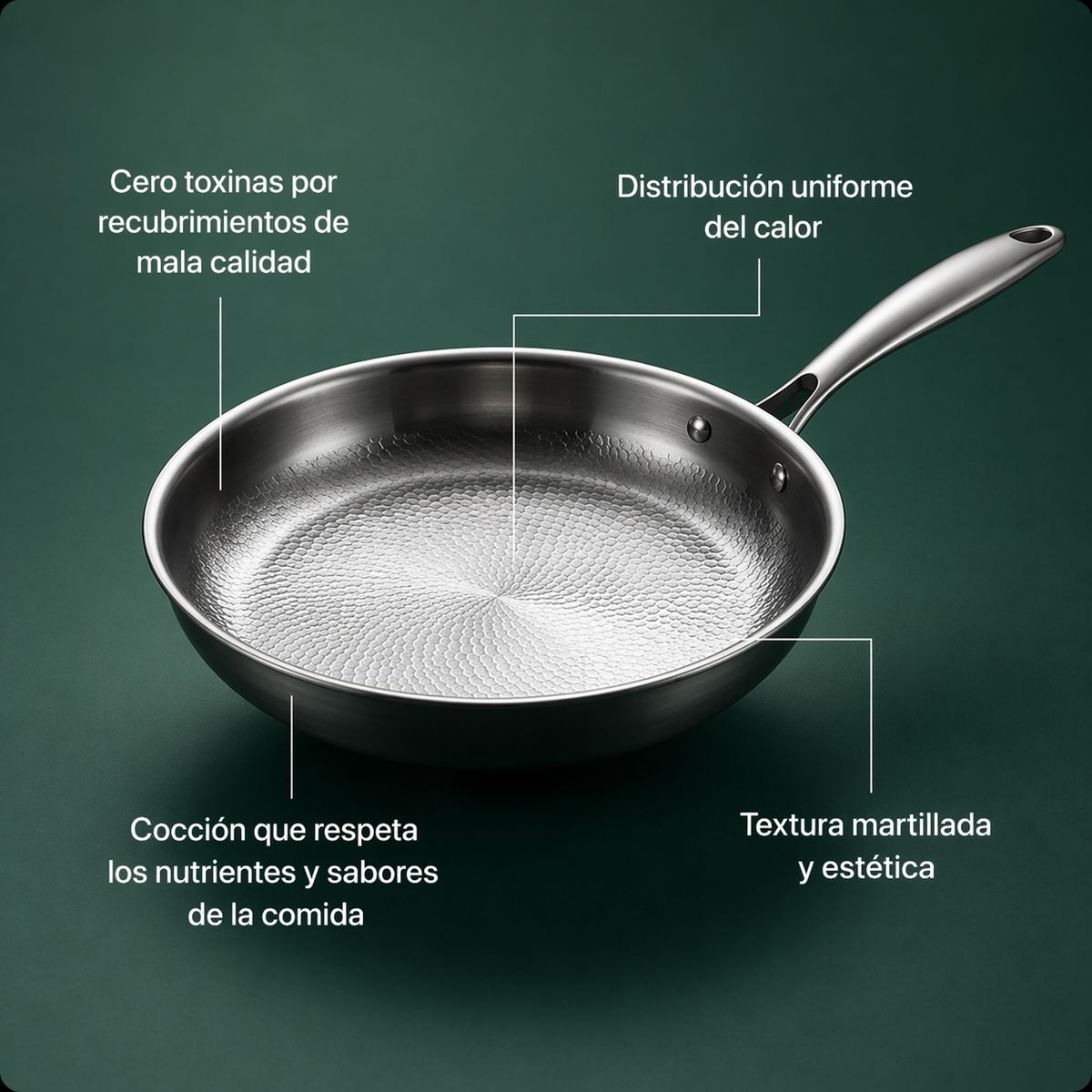 Es normal preguntarlo. Pero si sumas lo que gastas en sartenes que se desgastan, se pegan o pierden rendimiento… el costo real es mucho mayor a largo plazo. Aquí no estás pagando solo por una sartén, sino por dejar de reemplazar, por cocinar mejor y sobre todo, por tu salud.